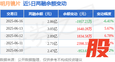 本站消息,6月16日指南针股票,明月镜片(301101)融资买入5384.36万元,融资偿还7341.59万元,融资净卖出1957.23万元,融资余额2.86亿元。